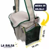 - Dos bolsillos laterales: 16 cm. de largo x 20 cm. de alto x 6 cm. de ancho; ideales para guardar el equipo de balancín o un termo de 1 litro.