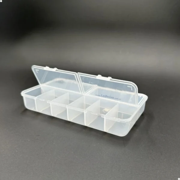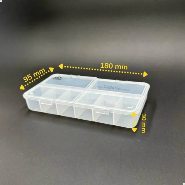 La Caja Plástica IPB M 8 divisiones es Práctica, compacta y funcional, ideal para mantener organizados tus accesorios de pesca, como anzuelos, esmerillones, plomitos, etc.