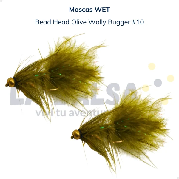 - 2 moscas Bead Head Olive Wolly Bugger #10