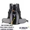 - Correas de compresión lateral, para mejorar la carga y disminuir el tamaño de la mochila.