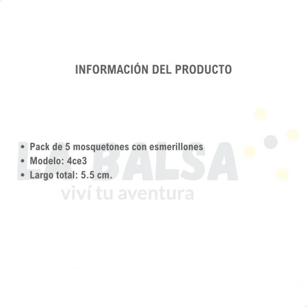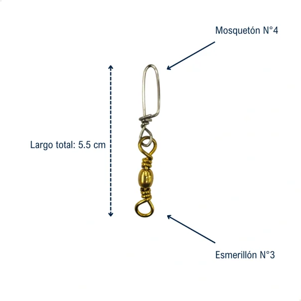 Diseñado para ofrecerte la máxima resistencia y durabilidad en tus aventuras de pesca. Con un diseño robusto y confiable, este accesorio es ideal para todo tipo de líneas de pesca y te garantiza un enganche y liberación fáciles y rápidos. Ya sea que pesques en agua dulce o salada, este mosquetón con esmerillón asegura una conexión segura entre el anzuelo, señuelo o cualquier otro equipo.