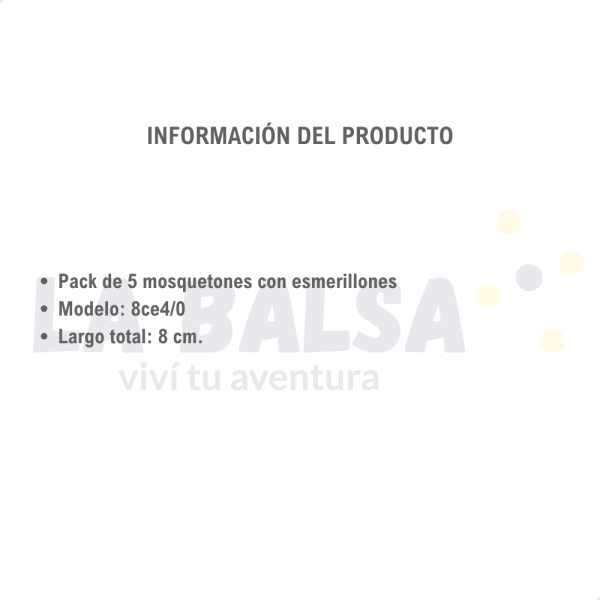 - Formato de venta: pack de 5 mosquetón