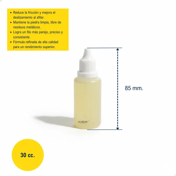 Aceite para afilar cuchillos 30cc. Reduce fricción, mejora el deslizamiento y mantiene la piedra limpia para un filo preciso y duradero.