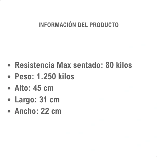 - Resistencia máxima sentado: 80 kg