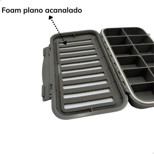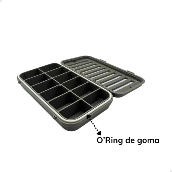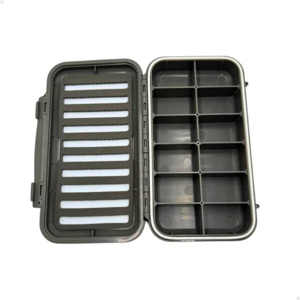 - Caja de moscas Grey Gull, con doble compartimiento , uno con Foam y otro con 12 divisiones