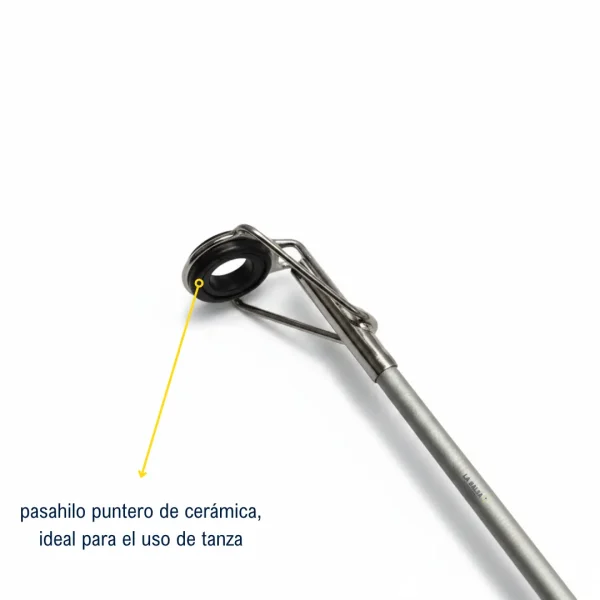 - 3 pasahilos + 1 pasahilo flotante + puntera (Todos de cerámica, ideal para el uso de tanza)