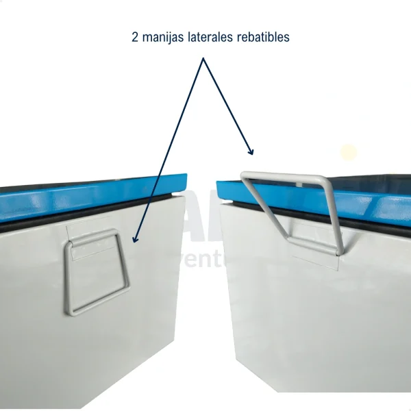 - Poliuretano en plancha de 2 cm: Es un material con excelentes propiedades aislantes, lo que asegura una menor transferencia de temperatura con el exterior, manteniendo los productos más fríos por más tiempo.