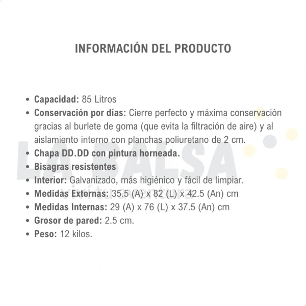 - Capacidad de 85 litros: Ofrece suficiente espacio para almacenar una cantidad considerable de productos.