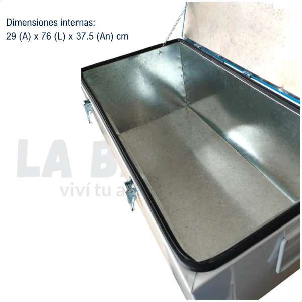 - Interior galvanizado: Resistente al óxido y fácil de limpiar, lo que la hace higiénica y adecuada para almacenar alimentos o productos que requieren estrictos estándares de limpieza.