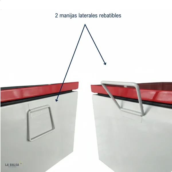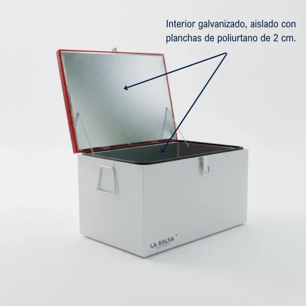 - Poliuretano en plancha de 2 cm: Es un material con excelentes propiedades aislantes, lo que asegura una menor transferencia de temperatura con el exterior, manteniendo los productos más fríos por más tiempo.