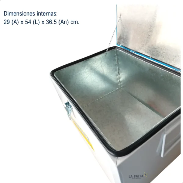 - Interior galvanizado: Resistente al óxido y fácil de limpiar, lo que la hace higiénica y adecuada para almacenar alimentos o productos que requieren estrictos estándares de limpieza.