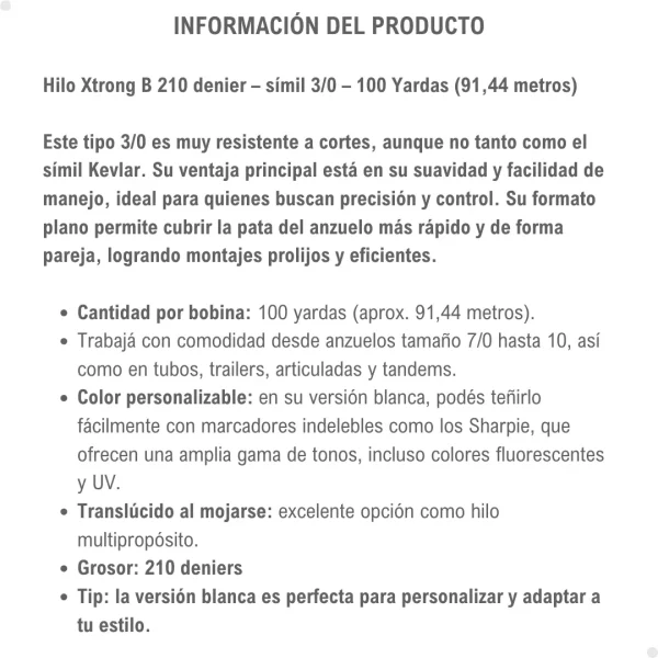 Hilo Xtrong B 210 denier – símil 3/0 – 100 Yardas (91,44 metros)