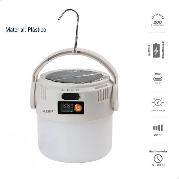 - Tipo de carga: Carga solar / USB tipo C
