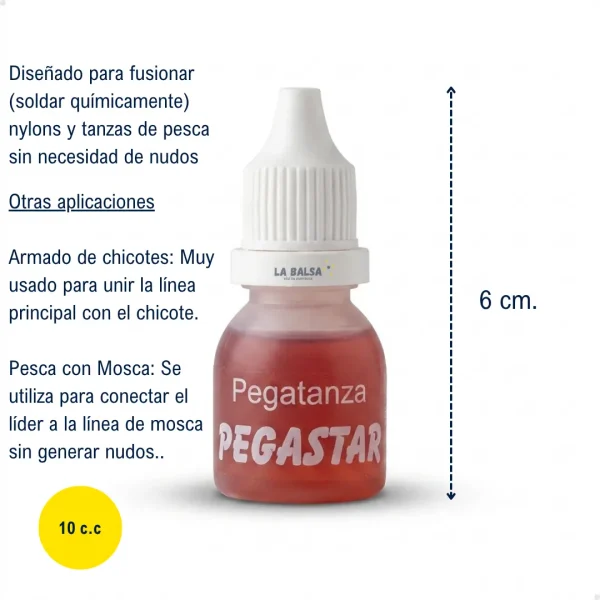 El pegatanza es un adhesivo especial, diseñado para fusionar (soldar químicamente) nylons y tanzas de pesca sin necesidad de nudos. Es ideal para unir chicotes, asegurar líneas de mosca y crear conexiones suaves que no se traban en los pasahilos, mejorando la durabilidad.