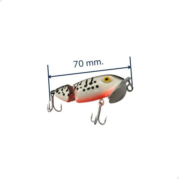 Diseñado para máxima resistencia y rendimiento. Este señuelo de 70 mm está equipado con dos anzuelos triples VMC de acero al carbono 4X, que garantizan una clavada firme y durabilidad superior incluso frente a los peces más agresivos. Su peso de 10 gramos, lo vuelve ideal para pescadores que buscan confiabilidad y efectividad en cada lance.